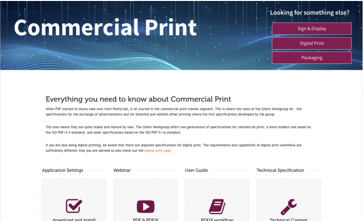 The Ghent Workgroup has introduced a Commercial Print landing page on its website, bringing together artwork creation and supply format information for creatives, publishers and printers dealing with advertisements and other commercial print work.