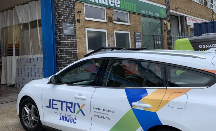 ‘It just made perfect sense to get the cars branded while we were doing the installation at Elmtree Signs,’ added Ben Woodruff, head of UK Jetrix sales. ‘We knew they were great at vehicle livery and it was perfect timing as they could be completed while the team of engineers went through the complete process from installation, testing and training on-site of the new printer. What’s more they took the elements we wanted on the cars, came up with the design, then printed and applied it – all while our team were there.’