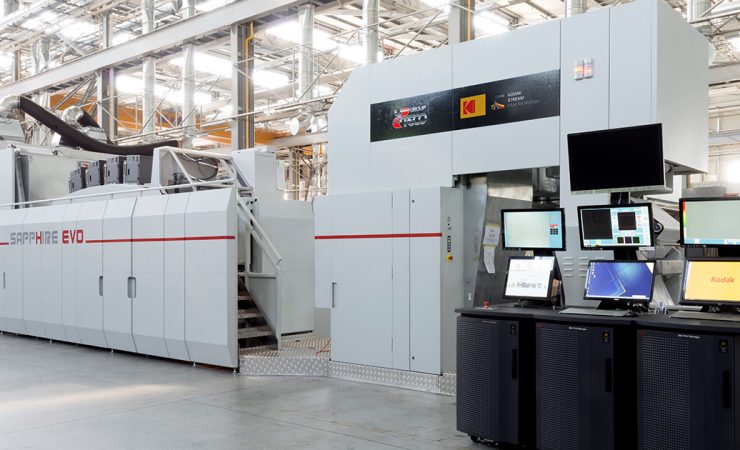 The Sapphire Evo M is ‘the first high-speed production inkjet press for flexible packaging print.’ It uses Kodak’s Stream continuous inkjet technology and is described as providing ‘low running costs and high productivity with consistent print quality claimed to rival flexo.’