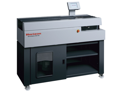The Horizon BQ-160 can produce strong, high quality perfect bound books up to 1.6 inches thick at speeds up to 180 cycles per hour. It features a range of energy-save and auto-off functionsm as well as the ability to notch in one or both directions, and an optional carbon air filtration system to reduce adhesive odours.