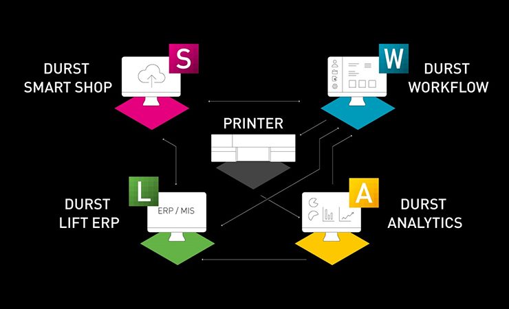 Durst founded its Software & Solutions division in 2019 with a team of over 60 people to provide software to streamline the complete print process. This includes: Durst LIFT ERP, a Cloud-based ERP/MIS system; Durst Smart Shop, a comprehensive premium e-commerce option for customisable print products; and Durst Workflow, a high-end system for fully automated management of pre-press and production tasks. Such systems are tailored for digital printing and offer a 360-degree approach for optimising printing processes in a mixed-vendor production environment.