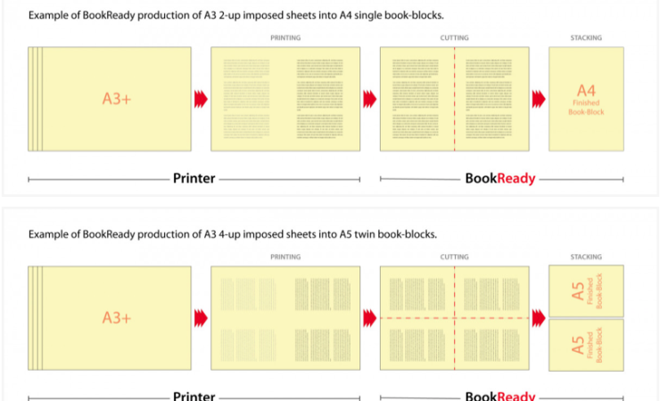 Tecnau has introduced BookReady, an inline cutting and stacking system that converts SRA3+ sheets printed 2- or 4-up into final size book blocks of up to A4 size ready for near-line perfect binding.