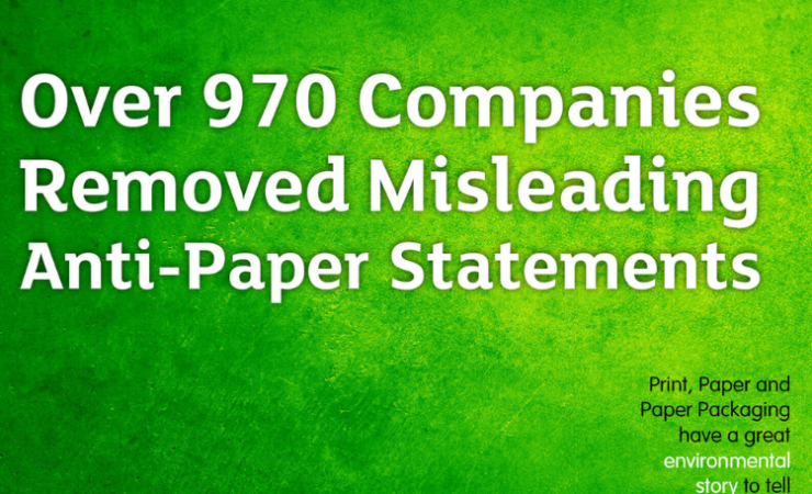 In Europe, to date, 630 companies have removed unsubstantiated claims about paper, including Lloyds Bank, RAC, Scottish Power, N Brown Group, HSBC, to name a few.