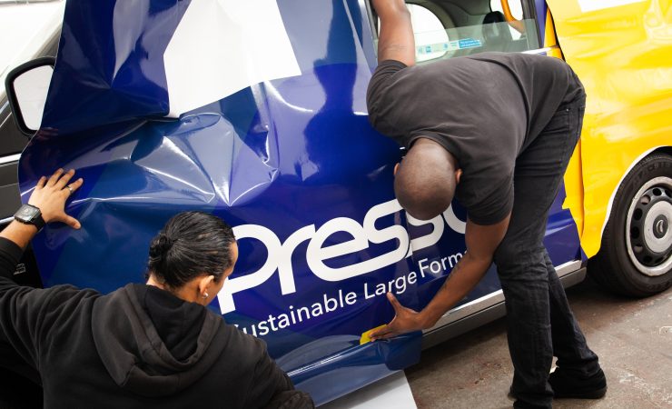 PressOn recently used the printer to wrap six electric cabs in the city of London as part of an ongoing sustainability project to showcase an eco-friendly printing practice. PressOn selected products that have a low impact on the environment and chose to partner with HP and Metamark to produce the branding of the cabs with recyclable self-adhesive vinyl.