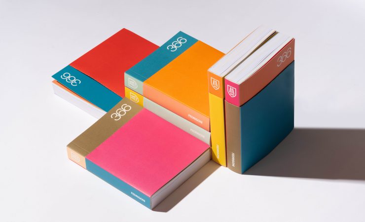 Assigned one of two colour palettes – orange or green – the designers were invited to consider how shuffling a range of colours could influence their design. They could use the full palette of 10 colours, or a subset of it. Used for the first time at this scale, the HP Mosaic tool applied algorithms to randomly shuffle the chosen colours within each design to make different combinations in each book. In addition, a generative code was used to randomly shuffle colours in every other part of the book, from the jacket to the inner divider pages, so that no ‘common page’ colours are the same from one book to another either. These designs were printed on a range of specially treated white papers from Fedrigoni’s Digital for HP Indigo collection. The images were printed on Sirio Ultra Black in white and one special colour, and tipped in by hand to each copy.