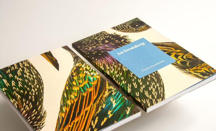 Antalis’ Curious Metallics ‘white gold’ media has been selected for the cover of poetry book An Druideog, because of its metallic shine, which transforms when viewed from different angles.