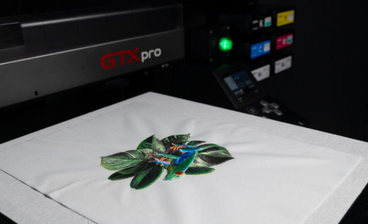 The GTXpro series printers do not need to be converted for this process. Only the camera and the associated software need to be connected to the printer. In addition, the process for this printing method on an embroidery is identical to the classic direct to garment printing.