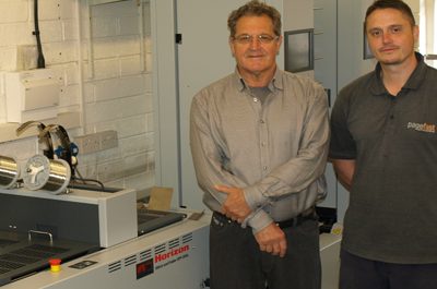 Keith Simpson, managing director of Pagefast Print & Publishing, with Peter Hennedy, supervisor, and the Horizon SPF-FC 200L Lancashire-based Pagefast Print & Publishing has chosen…