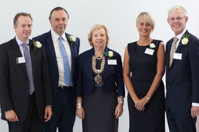 (L-R) Charles Jarrold CEO of BPIF, Robert McClements chief executive of CDi Yorkshire, Helen Esmonde master of the Stationers’, Julie Rice director at Evolution Print,…