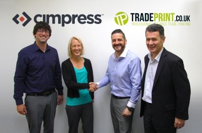 From left: Rod Scrimgeour, Tradeprint, Ashley Hubka, Cimpress vice president for Portfolio Management & PMI, Paul Anderson, Tradeprint owner, and Bruce Hamilton, vice president for…