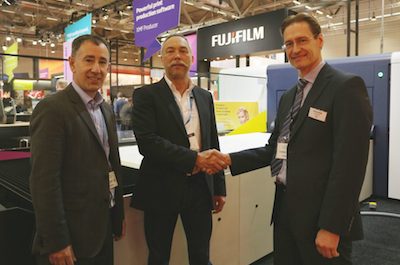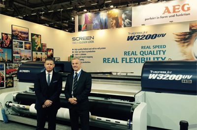 Clicks managing director Alan Rigglesford with Screen Europe vice president Bui Burke A Screen Truepress Jet W3200UV wide format printer with dual flat-bed/roll-to-roll capability has…
