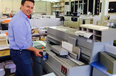 Richard Hollingworth, director, with the DigiBook 200 Hollingworth & Moss, printers and traditional book binders based in Leeds, have installed a DigiBook 200 PUR binder from Morgana…