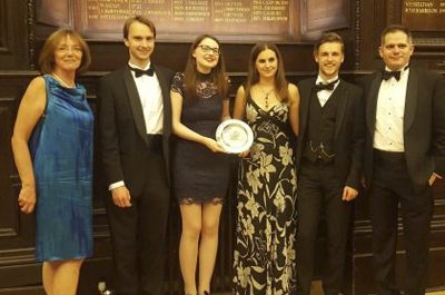 (L-R) Paul Simpson, sales manager, Renz UK, Alison Turner, Westhoughton High’s leader of learning design technology, with winning pupils Anna Cookson and Brandan Roughley …