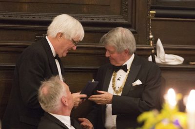 David McGinlay of Müller Martini receives the Novel Manufacturing award from Stationers’ Company master Ian Bennett (picture: David Jones) The winner of 2017 Stationers’…