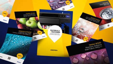 Innotech Digital used Sign & Digital UK to present a swatch of materials printed on Epson's R5000 resin ink roll-fed printer and has further swatches…