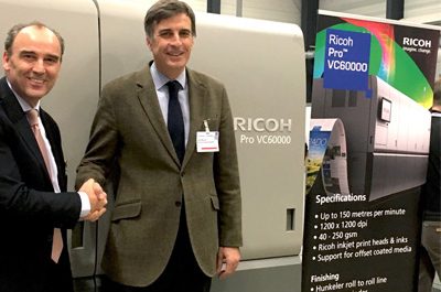 (L-R) Eef de Ridder, Ricoh Europe, and José Manuel Alonso-Viguera, Servinform with the Ricoh Pro VC60000 at Hunkeler Innovationdays Spanish transactional printer Servinform has…