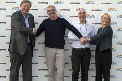 (L-R) Ernst Teunissen, executive vice president & CFO Vistaprint, Matteo Rigamonti, Founder Pixartprinting, Alessandro Tenderini, CEO Pixartprinting and Ashley Hubka vice president, Corporate Strategy Vistaprint For a total…