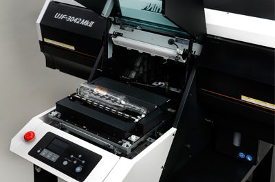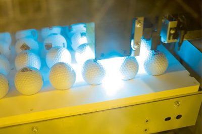 Using jigs makes it easy to print many items in one go, such as this Mutoh VJ-426UF printing golf balls Product decoration promises low…