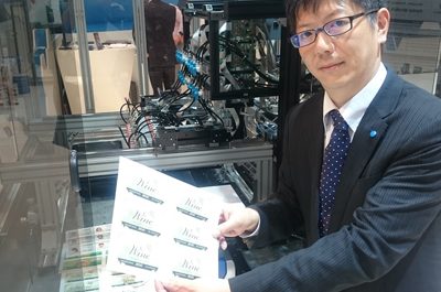 Yuichi Itoh, assistant manager, component business division, Konica Minolta Inc inkjet business unit, with some of the samples produced at drupa using MEMS printhead technologies.…
