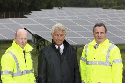 (L-R) Geoff Stewart, finance director, Brett Martin; Laurence Martin, managing director, Brett Martin; Nick Boyle, CEO, Lightsource BP Sign and graphics company Brett Martin…