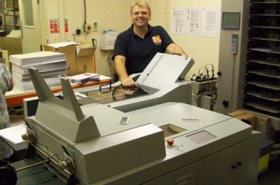 Mark Dobson with the Touch CF375 creaser/folder A need to increase productivity and finishing capacity prompted Charing Cross Print to invest in a Touchline…
