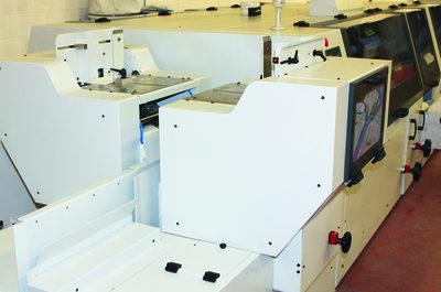 The business end of the Risetec BR4, where book blocks for hard cover binding are end papered New technology from Italian manufacturer Risetec gives digital…