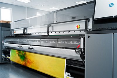 HP’s established latex roll-fed machines like this Latex 3000 will soon be complemented by a “true hybrid” flatbed model Last week at the ISA…
