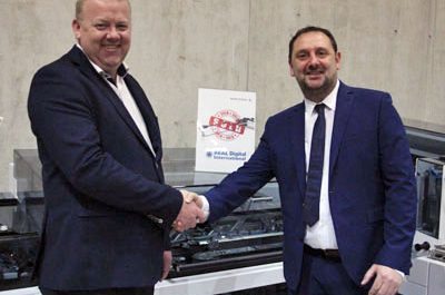 (L-R) Barry Stephens, production director, REAL Digital International and Andy Wain, UK senior account manager, Böwe Systec, at Hunkeler Innovationdays 2017 A Böwe Systec…