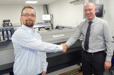 Gavin Wells, Atlantic area manager hands over the Ricoh Pro L4130 Printer installation to Vinyl Decals Direct owner Steve Tanner Vinyl Decals Direct has…