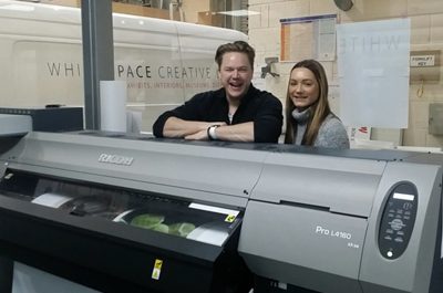 Nick White, studio manager and Abbie White, studio assistant at White Space Creative Hertfordshire-based White Space Creative has upgraded its original eco solvent printer…