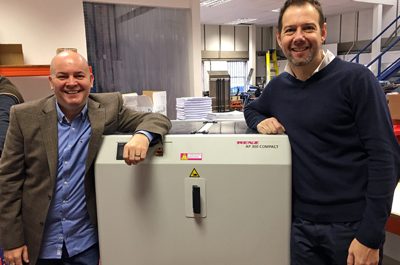 (L-R) Rob Hunt, director of Ace Binding with Renz UK sales manager Dermot Callaghan Ace Binding ordered the UK’s first Renz Inline 500 Compact…