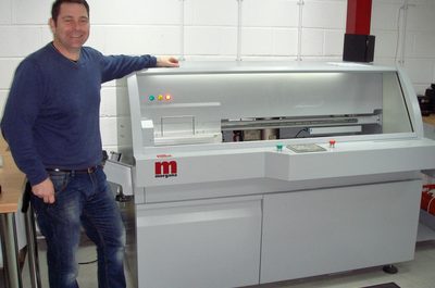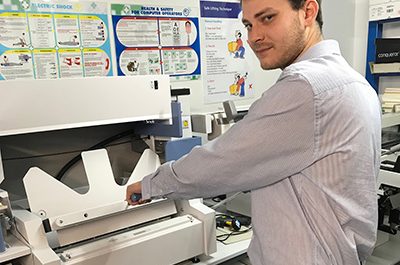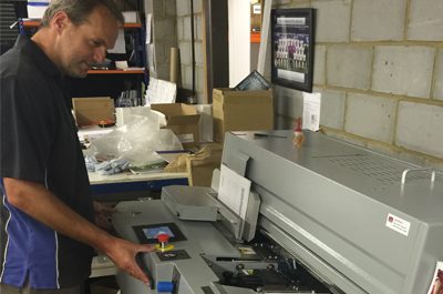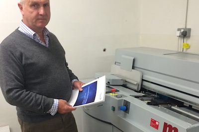Jamie Gibbons of Hobs Abingdom with the new binder Hobs in Abingdon is the first branch of the Hobs Repro group to install a Fastbind…
