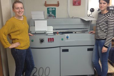 (L-R) Leda Struga, digital & mac operator and Chloe Fisher, assistant office manager TG Print & Design has installed a Morgana DigiBook 200 PUR perfect…