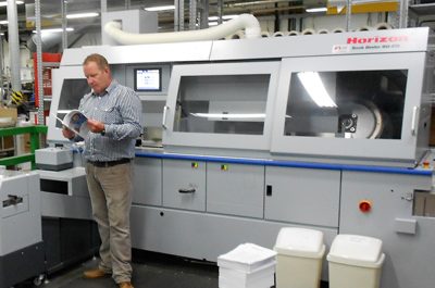 Horizon BQ-470 perfect binder Weston-super-Mare-based trade finisher UK Bookbinders has invested in an IFS-supplied BQ-470 perfect binder and HT-30 three-side trimmer to support a…