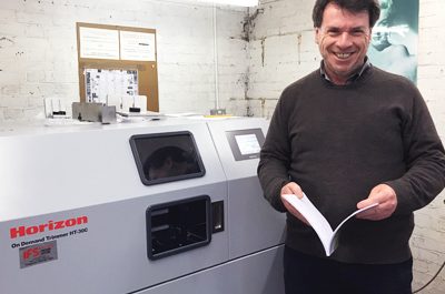Russell Jones, Catford Print Centre owner with the HT30C Investment in an IFS-supplied Horizon HT-30C three-side trimmer has enabled Catford Print Centre improve its…