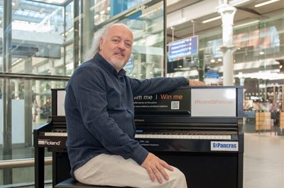 Comedian Bill Bailey played a surprise performance on a wrapped piano at St Pancras International A Roland piano played by Bill Bailey in St…